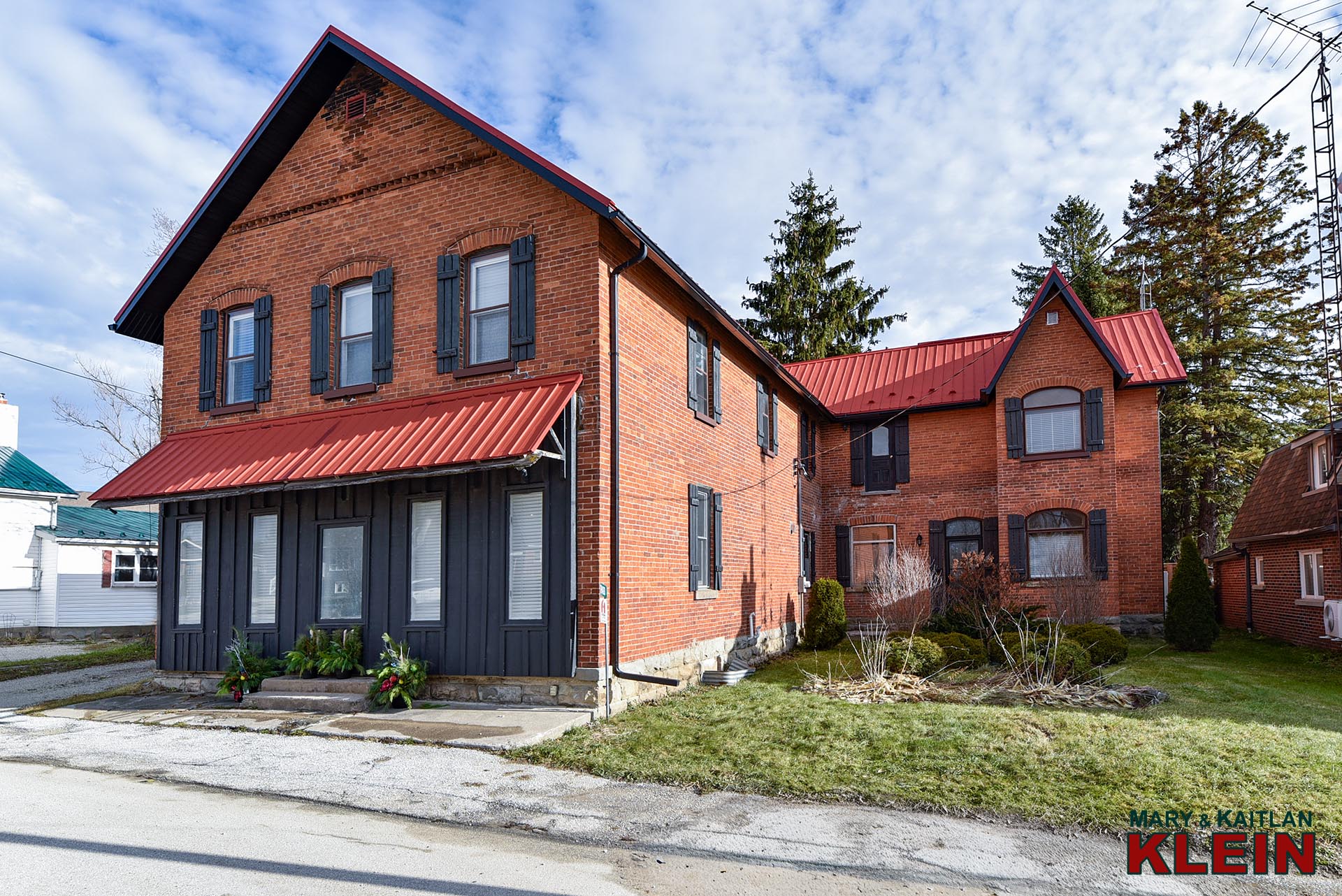 Located in the charming village of Singhampton, 1.5 hours from Toronto, 20 minutes to Collingwood, and 20 minutes to Creemore, is this stately, red brick Century home, full of character and rich history dating back to the 1800’s, which sits on an approximately .31-acre lot with parking in the front and rear access. Offering approximately 3600 sq.ft. of tastefully updated living space, this family home has convenient C1 zoning with permitted uses such as a primary residence, personal service business, retail store, restaurant, vet clinic, among others, and has excellent street exposure. Currently set up as a recording studio with the family living quarters upstairs, this versatile layout allows for a multitude of potential uses and is an ideal setup for multi-generational living.