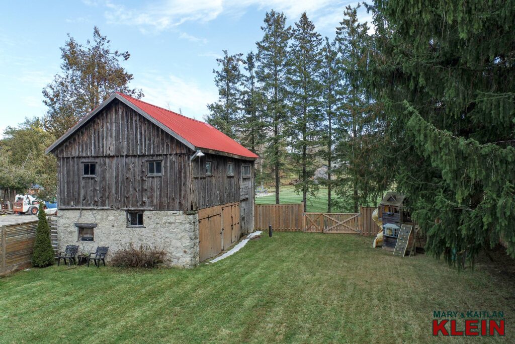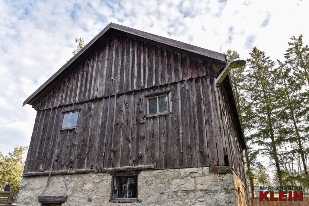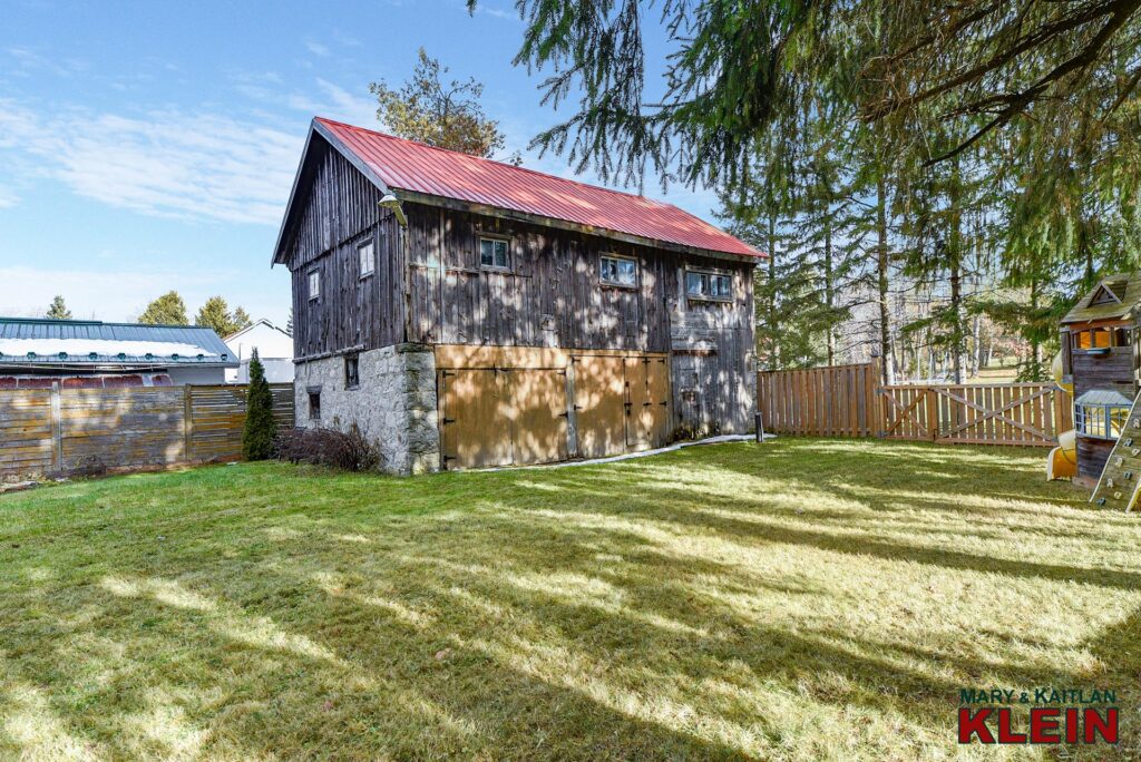 A detached approximately 34 ft. x 21 ft. barn/workshop with rustic stone walls has hydro and offers two levels of versatile workspace and storage.