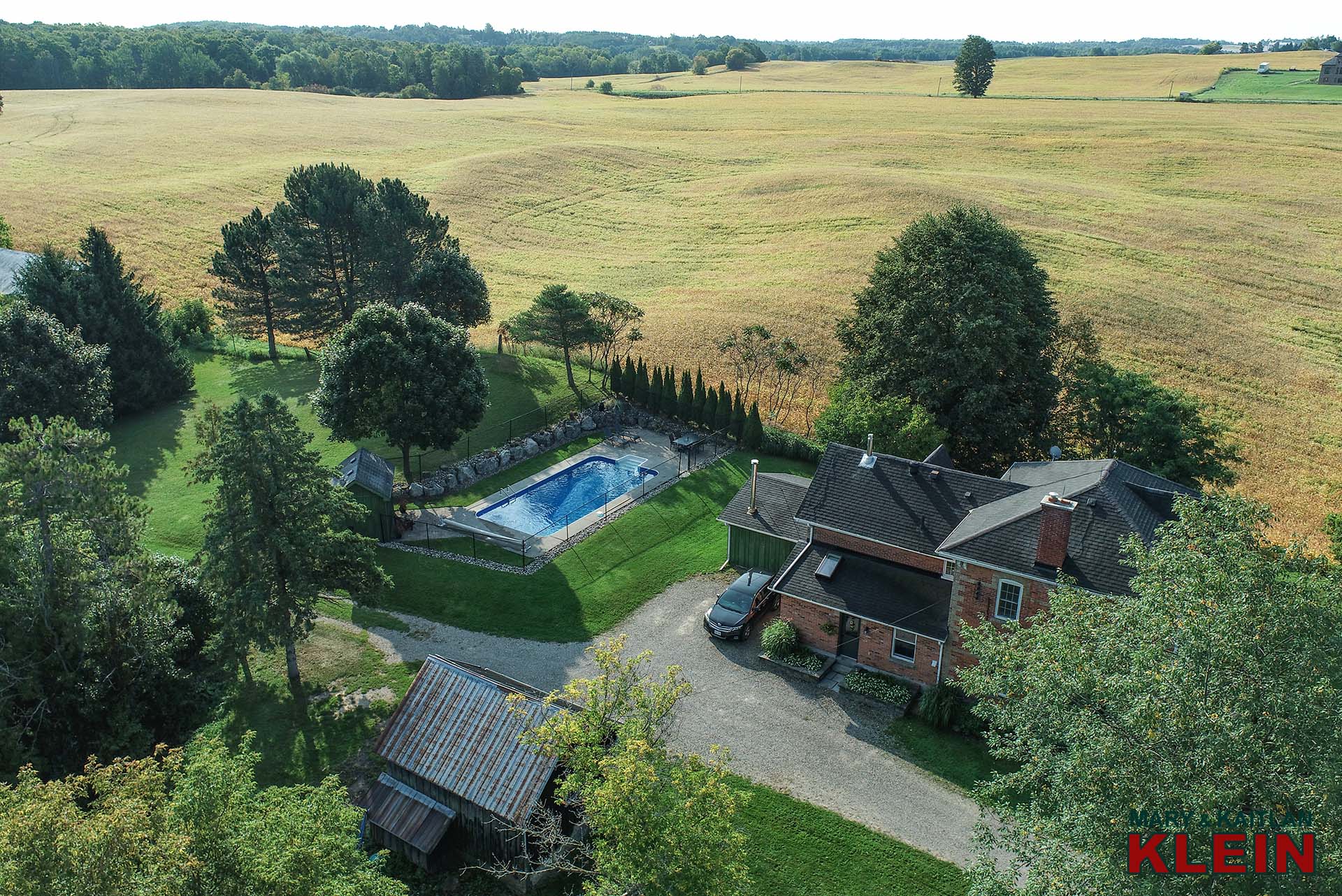 Located on a quiet rural country road, in a fantastic Southerly location, this charming 4-bedroom, red brick Century home stately sits on 4.37 mature acres with views of the surrounding rolling countryside and neighbouring farmers’ fields. The history of this rare Victorian dates to the early 1800s with the Skelton family, and, for 145 years, this property was predominantly owned by the White family until 1985. Only one other family has owned this property since 1985! Offering endless potential, this residence has a detached 1.5 car garage and a large, approximately 70 ft. x 20 ft. driveshed with a steel roof and a concrete floor. A unique attribute of this property is the remnants and stone foundation of the large barn. Enjoy trails with apple, crab apple, and walnut trees, or unwind by the solar-heated, saltwater, in-ground pool and savour the abundance of birds, wildlife, and tranquillity of the surroundings. Lovingly maintained by the current owners, this home exudes warmth and character, beautiful wood baseboards, trims and high ceilings, and offers approximately 3046 sq. ft. (MPAC).